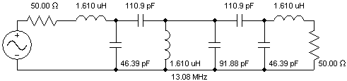 Note that the equal inductor design above contains only one inductor value and contains a shunt capacitor at every node. The expense for these nice features was the addition of two extra capacitors. Also note that physical symmetry is maintained in the equal inductor design.