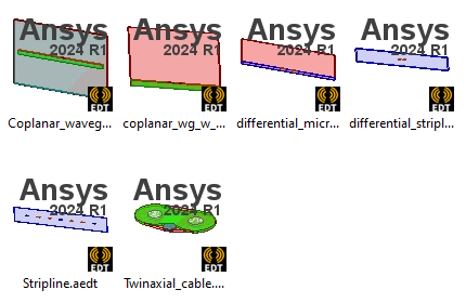 Your Ansys Electronics Desktop installation includes an example directory containing projects folders for several kinds of designs.