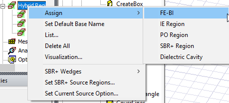 - If an SBR+ Region is assigned, the design becomes one way coupled. (See Assigning Hybrid Regions.) You can use the Set SBR+ Source Regions command to group source regions for SBR+ for two-way couplings between the grouped regions.