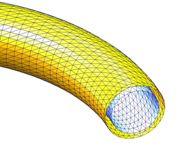 When there is a narrow gap between two curved surfaces, a small value of aspect ratio ensures the gap to be uniform. The figures below illustrate a geometric model with the aspect ratio of 20 and 2. Smaller aspect ratio ensures better representation of the curvature for skewed curved surfaces, especially in thin curved layers.