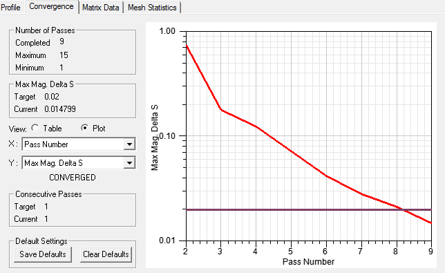 - The Solved Elements at each adaptive pass, which includes solve inside tetrahedra, and, for projects using IE Regions for metal objects, also includes the number of solved IE surface triangles.