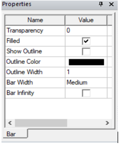 - Bar Width, controls the thickness of the bar. Medium (default), Wide and Narrow are the width that equals to ½, ¾ and ¼ of the min spacing between adjacent points respectively.