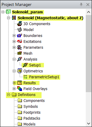 /Item. In the above figure,“Magnetostatic/Analysis/Item”represents Setup1, and “Magnetostatic/Optimetrics/Item”represents ParametricSetup1.