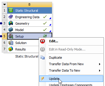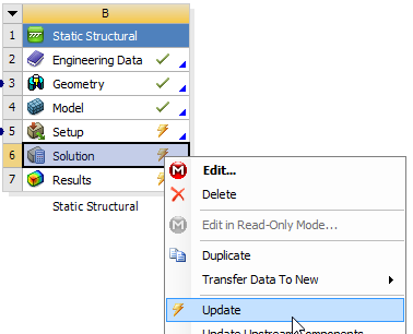 Update the Solution cell of the Mechanical panel.