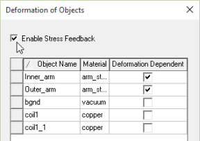 Note: You must manually Enable Stress Feedback and select the desired stress feedback objects in the Maxwell design.