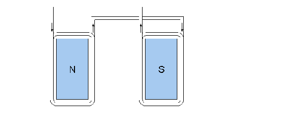 When the number of turns per pole includes a half turn, the number of conductors per pole is an odd number. In this case, one pole side has one more conductor than the other pole side, and the two terminal leads of one pole coil are at different axial sides (or at the same pole side), as shown below.