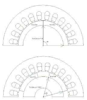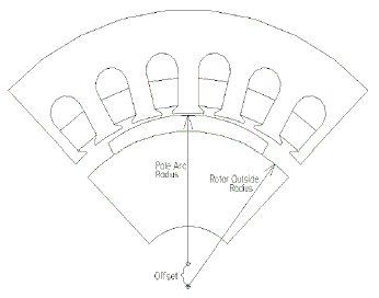 Input 0. The arched permanent-magnetic pieces to form the magnets of the rotor might not be concentric with the rotor as shown in the figure. In the electric machines with non-uniform air-gap, there exists an offset between the two centers. RMxprt terms it as Pole Arc Offset. This example uses uniform air-gap; therefore, the offset is set to 0.