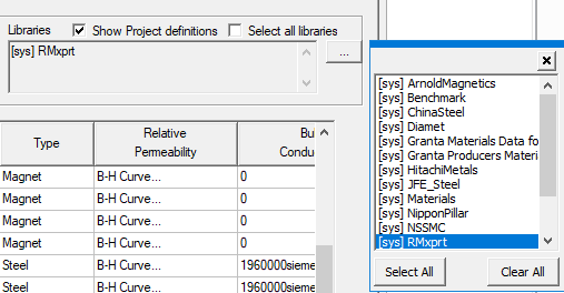 Note: If RMxprt is not listed in the libraries box in the upper right corner of the Materials window, quit the Materials window, click Tools > Configure Libraries, add RMxprt (under materials) and click the Save as Default check box. Then click OK. |