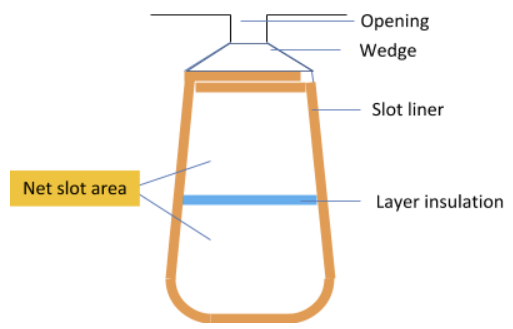 - Snet is the net slot area which is obtained from the gross slot area minus opening area, wedge area, liner area, and layer insulation area, as shown below:
