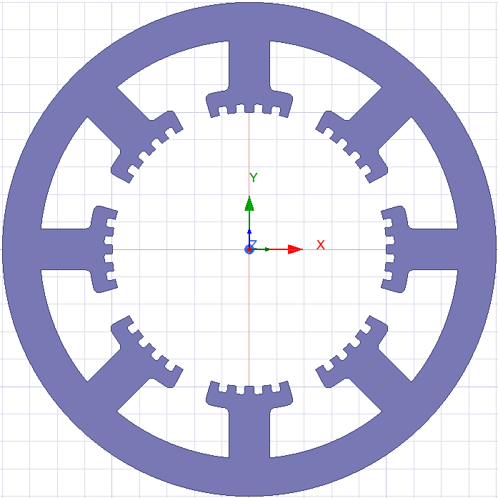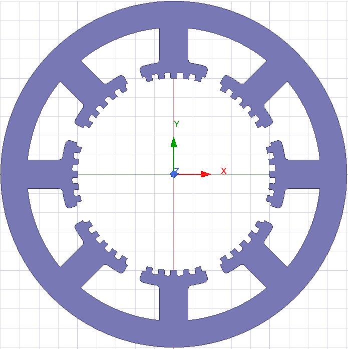The StepMCore UDP is used to create stator and rotor cores for Variable Reluctance (VR), or Hybrid, stepper motors, as shown as in the first figure for a stepper motor and in the second figure for the stator and rotor.