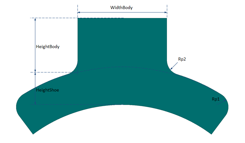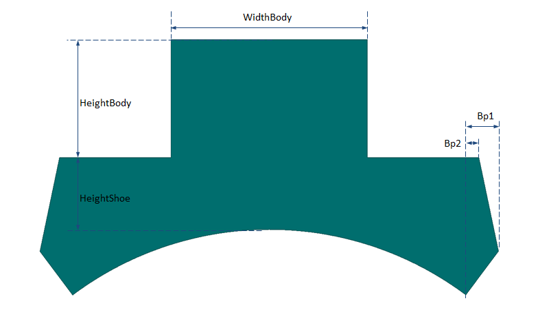 When SurfaceTeeth = 1, which means there are no slots on the shoe surface, the shoe width, noted as WidthShoe, will be directly obtained from EmbraceShoe. When SurfaceTeeth > 1, the minimum shoe angle AngShoeMin will be obtained from the minimum angle to be able to create the specified number of surface teeth, that is
