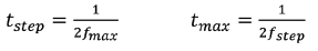 Setting fstep to a small value increases the length of the pulse, and minimizes the influence of the future falling edge. Additionally, a smaller fstep ensures that resonances and other sharp features in the frequency data are adequately captured. As tstep and fstep approach zero, the calculated results will converge on the continuous time descriptions given earlier.