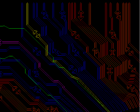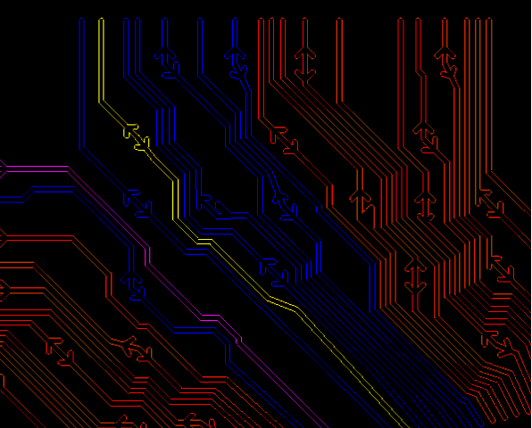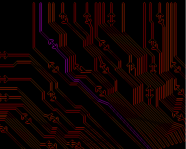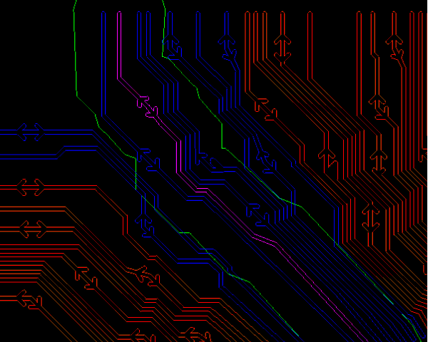 The neighborhood of net A is determined. Nets in the neighborhood of A are marked nonvalid (blue).