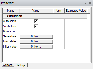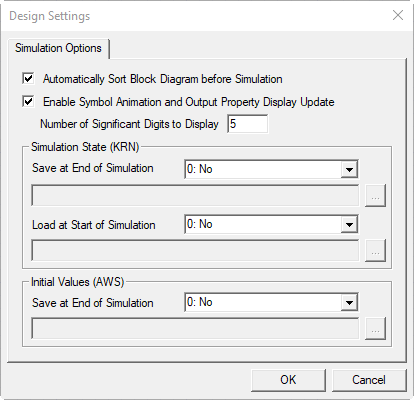 - Enable Symbol Animation and Output Property Display Update – Select this check box to enable symbol animation and enable the Number of Significant Digits to Display field. Animations embedded in a symbol change the symbol appearance during the simulation process in response to a change in value of a system quantity. See Using the Symbol Editor for more details.