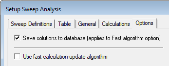 3. On the Options tab, select Save solutions to database, as shown below.
