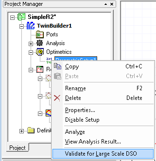 1. Right-click the parametric sweep, and select Validate for Large Scale DSO.