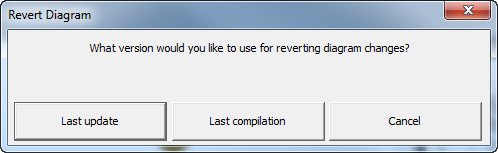 You have the option to revert to the Last update or the Last compilation of the model text you generated in the Diagram Editor.
