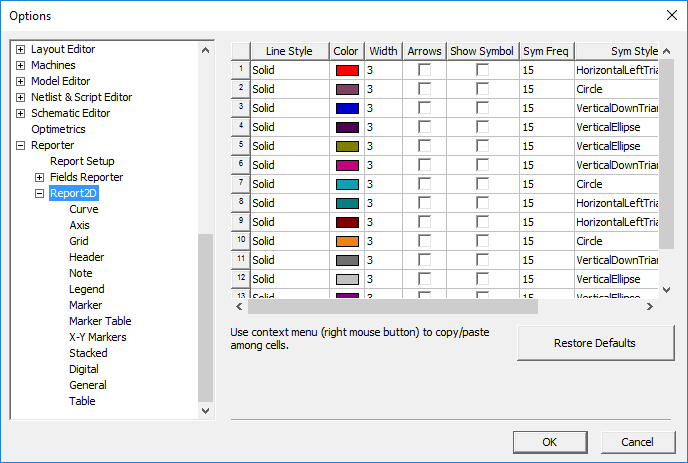 - Select Tools > Options > General Options > Reporter > Report2D.