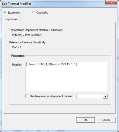 - With Expression selected, you can write an equation for a thermal modifier in the Parameters Modifier text field.