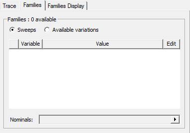 - Nominals field (disabled if none exist in the design) lets you Set All Variables to Nominal, Set All Unswept Variables to Nominal, or to Choose Nominals to open a dialog box in which you can select the variables you want to set to nominal values.