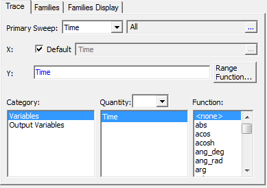 - Use Time as a primary sweep for TR solutions. Use Frequency as a Primary Sweep for AC solutions.