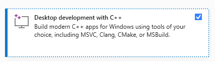 You must install the workload package Desktop development with C++ before using Visual Studio 2017 (or later) C++ Compiler.