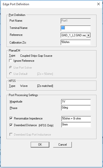 - Select Renormalize Impedence and set the amount to a non-zero value. The default impedance for re-normalization of each port is 50 ohms.
