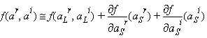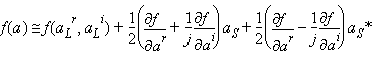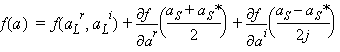 where J(aL) is a Jacobian matrix of the derivatives of f at a = aL with respect to the small-signals aS.