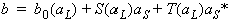 Using these matrices, the dependence of b0, S, and T on aL is written as: