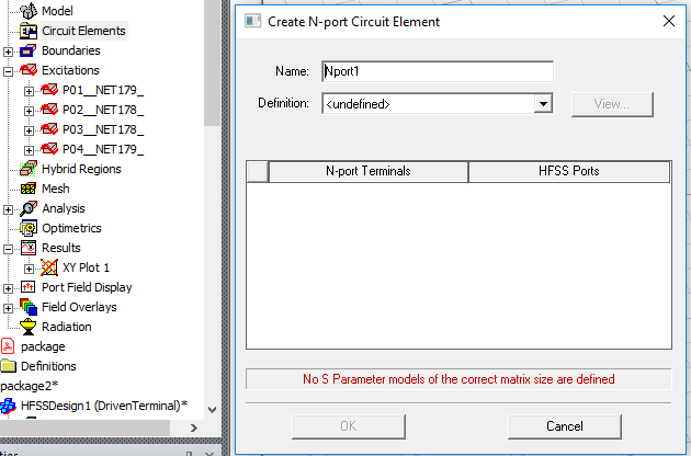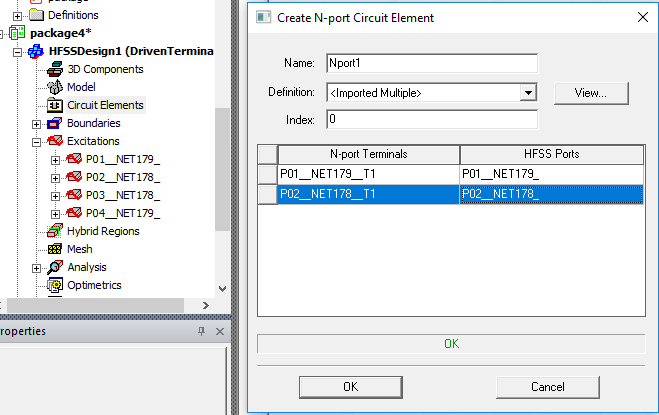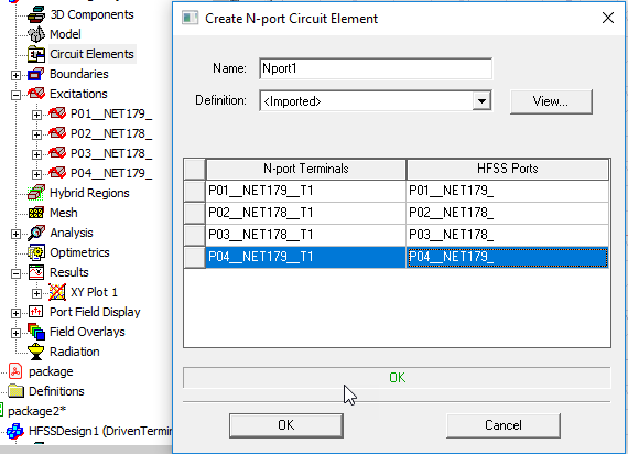 OK to close the dialog box. You then make HFSS Port assignments in the Create N-port Circuit Element dialog.