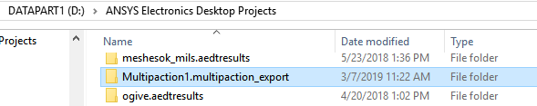 The model and particle files (*.vtu) will be written to a directory at the same level as the HFSS project: