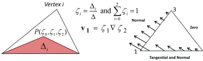 In HFSS the shape functions or testing functions Wn (appearing in the above equations) are vectors. They are curl conform which essentially means that the tangential continuity of the E field is maintained. They are also hierarchical with variable polynomial order. In other words the higher order polynomial shape functions are appended to the lower order polynomial shape functions. Different orders of basis functions employ different interpolation schemes for interpolating field values from the nodal values. This property is imperative for the iterative solver.