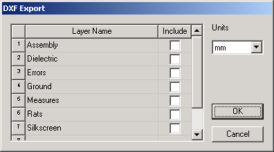 - Choose a unit of measurement on the Units drop-down menu (cm, ft, in, km, meter, mil, nm, uin, um). Default type is mm.