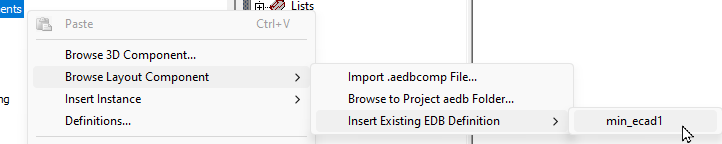 - In the Project Manager, right-click 3D Components and access the Browse Layout Component flyout menu: