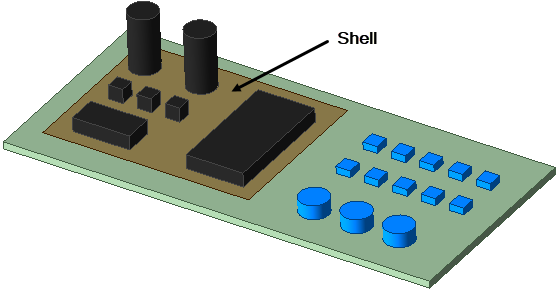To prevent the shell from providing a redundant thermal conduction path along the surface of the substrate, specify an infinitesimal thickness in the shell object attributes and specify a material with negligible thermal conductivity.