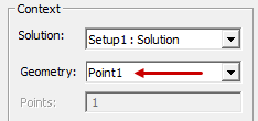 To tabulate or plot Temperature and Mag_HeatFlux at a point versus Time (transient solutions only), the setup would be the same as the preceding example, except for the Geometry selection: