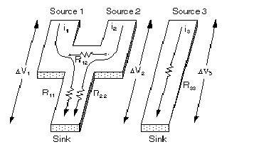 R12is the mutual resistance between current paths 1 and 2. Mutual resistance only applies to current paths within the same net (that is, conductor nets that have multiple sources of current).where: