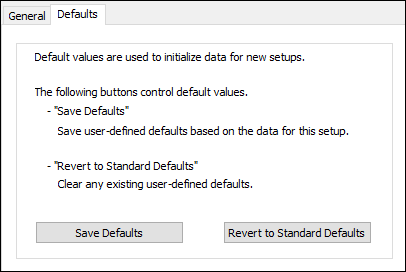 Use the Defaults tab to save your settings as the default or revert to the original settings.