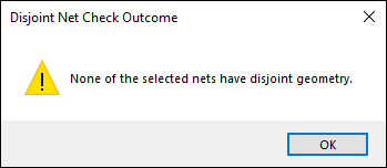 The Disjoint Net Check Outcome window appears, showing the results.