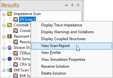 After running a simulation in SIwave, you can analyze simulation results and create various exportable reports.