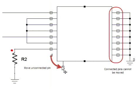 - Moving an unconnected pin onto a wire or pin of another component and accepting the changes causes a connection to be made.