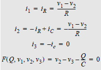 The DC behavior of the RC-combination can be described by the following equations, which were extracted from the TR-equations: