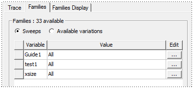 - On the Families tab, change the setting to All in the Value column for each variable.