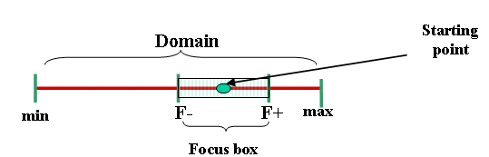 - The focus box does not limit the search. Rather, the Focus box = an initial guess of optimum search domain. The starting point is the center of the focus box, but the search does extend beyond the box.