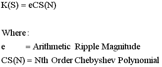 If zeros are assigned to the filter stop band, the zeros are placed in polynomial form in the denominator of the K(S) characteristic equation, and the Chebyshev polynomial in the K(S) numerator is replaced with a more general equiripple equation.