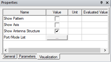 If you have previously solved the source design, and correctly assigned valid phase centers, you can check Show Pattern, and see additional display properties. The antenna pattern is computed and displayed in the bounding box in the Model window.