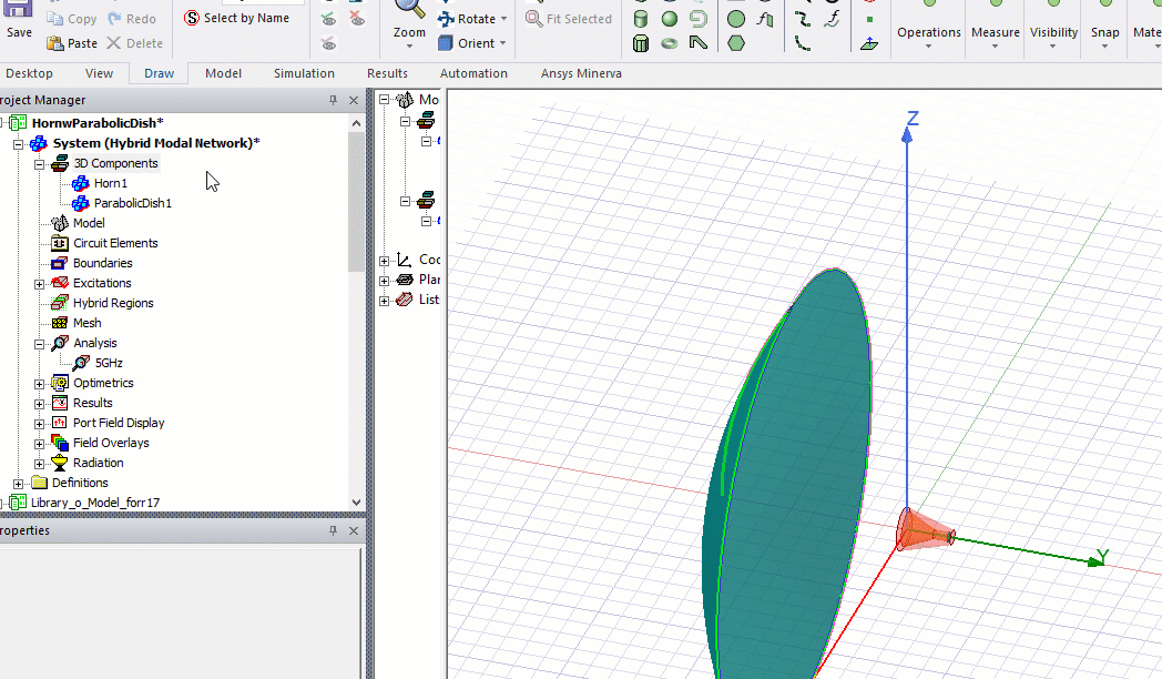 on the dish and on the radiation boundary of the horn need to be modeled.