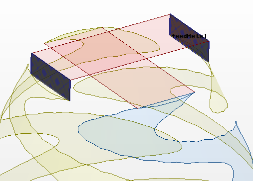 Perfect E boundary conditions are assigned on the four arms of the antenna and the feed metal.