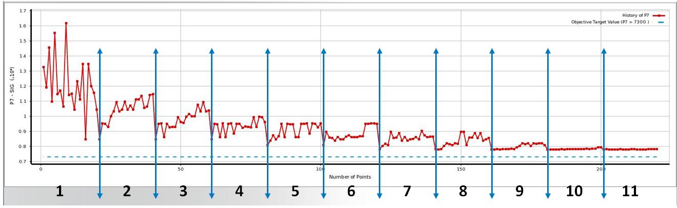 - Populations 3 – 11: Starting from the third population, the minimum and maximum output values are used in the next steps to scale the values (on a scale of 0 to 100). The mean variations and standard deviation variations are checked. If both of these are smaller than the value for the Convergence Stability Percentage property, the algorithm is converged.