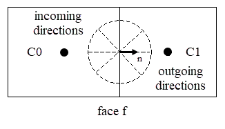The ray paths are calculated and stored prior to the fluid flow calculation. At each radiating face, rays are fired at discrete values of the polar and azimuthal angles. To cover the radiating hemisphere,